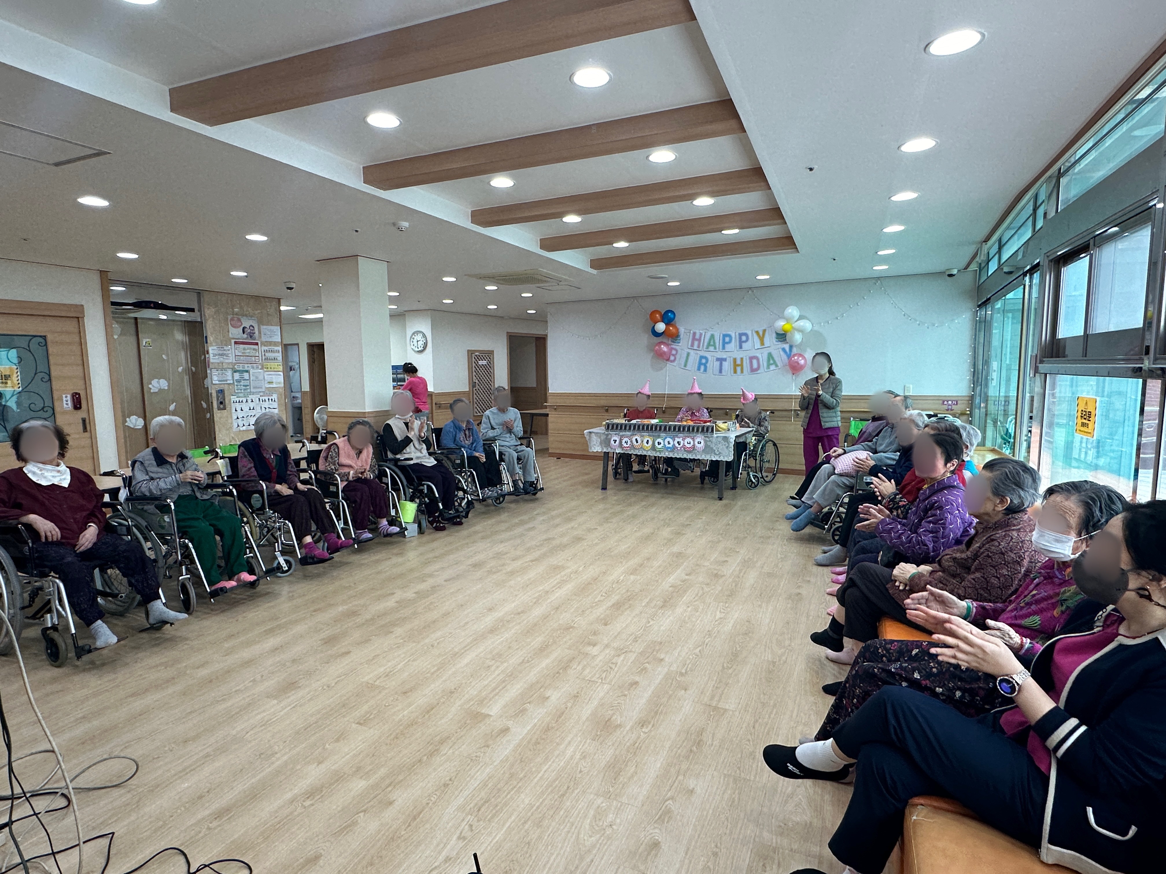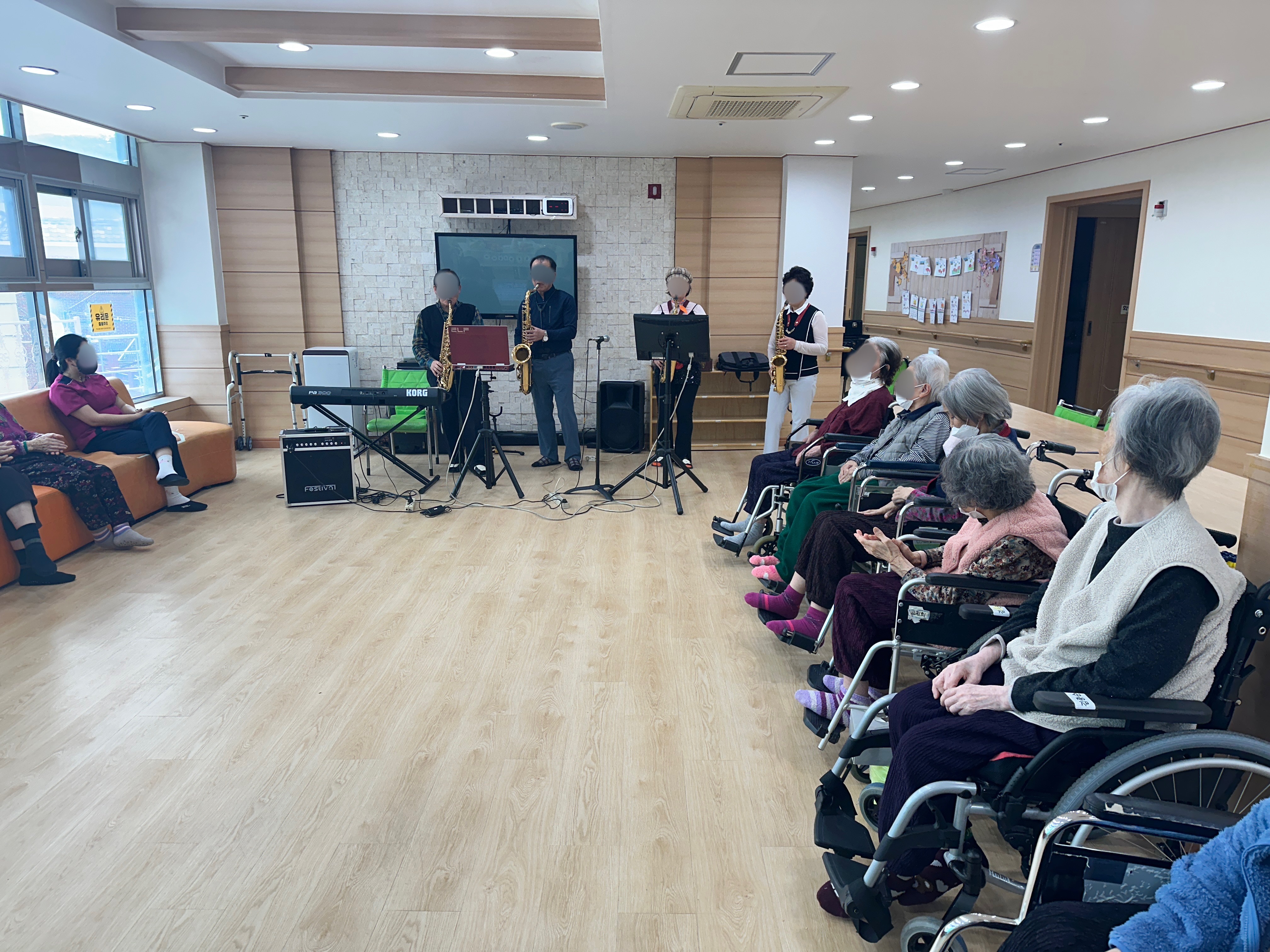 3,4월 어르신의 생일을 맞이하여 생신잔치와 색소폰공연을 관람하였습니다.